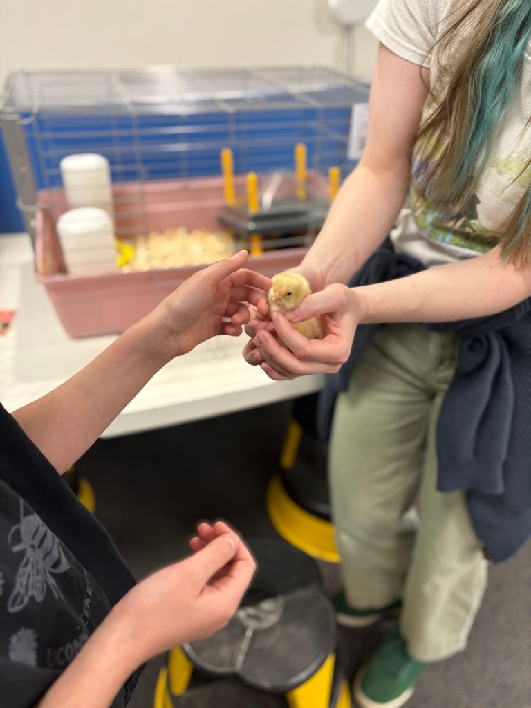 Had we arrived at this library, we would have been able to witness the hatching of some chickens. I guess we will just have to settle for a quick peek and pet.