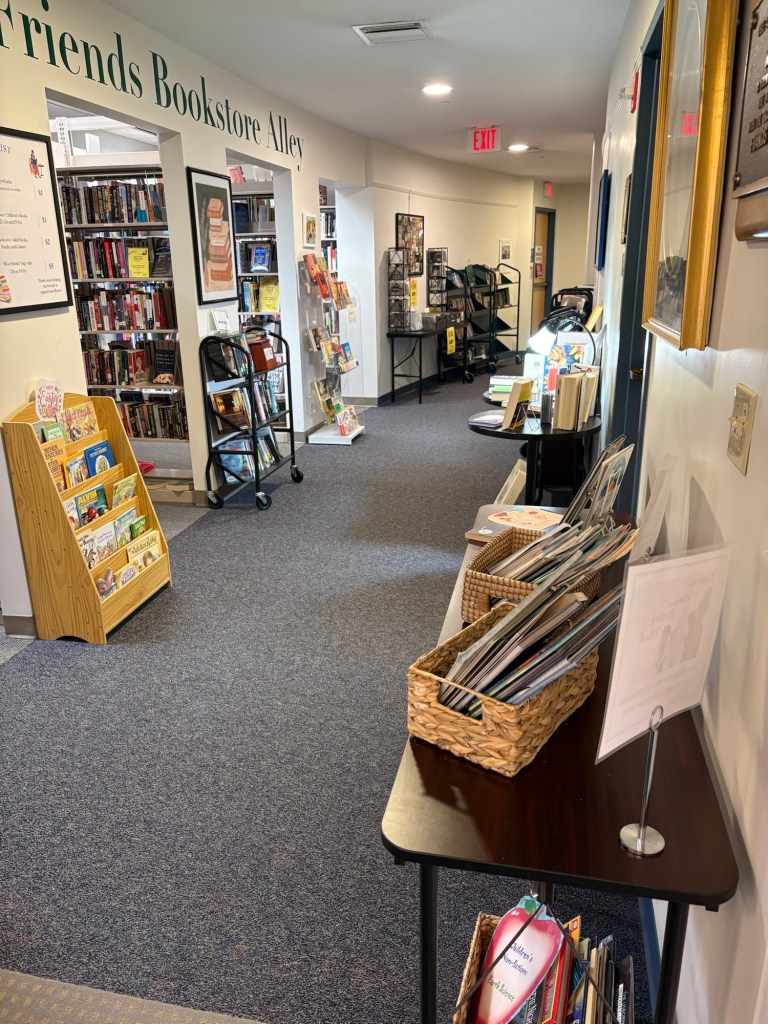 Just when we thought we had seen it all, just as we were about to leave we noticed a hallway that we had initially missed. The Friends Bookstore Alley was a delightful addition to this charming library. Books can be purchased here, in the Alley, for a small donation.